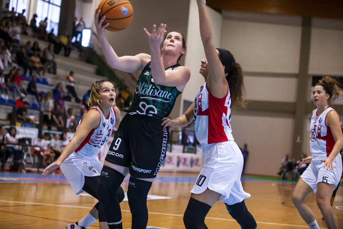 CAMPOBASSO: Trimboli 4 (2/3, 0/3), Kacerik 3 (0/3, 1/3), Parks 14 (4/9, 2/4), Nicolodi 8 (2/4, 1/2), Milapie 3 (1/3); Quiñonez 17 (4/7, 2/5), Togliani 5 (1/4, 1/3), Narvičiūtė 1, Battisodo 6 (1/1, 1/2), Perry (0/2, 0/1). Ne: Giacchetti e Vitali. All.: Sabatelli.