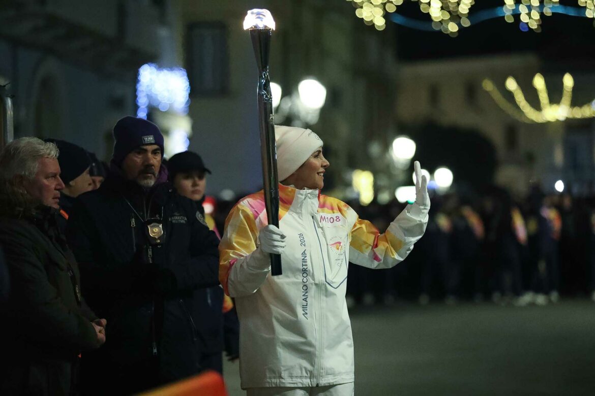 La Fiamma è entrata in città nella sera tersa e gelida del primo giorno dell’anno, fino ad arrivare in Piazza Vittorio Emanuele II con l’ultima tedofora, l’elegantissima Rossella Ferro.