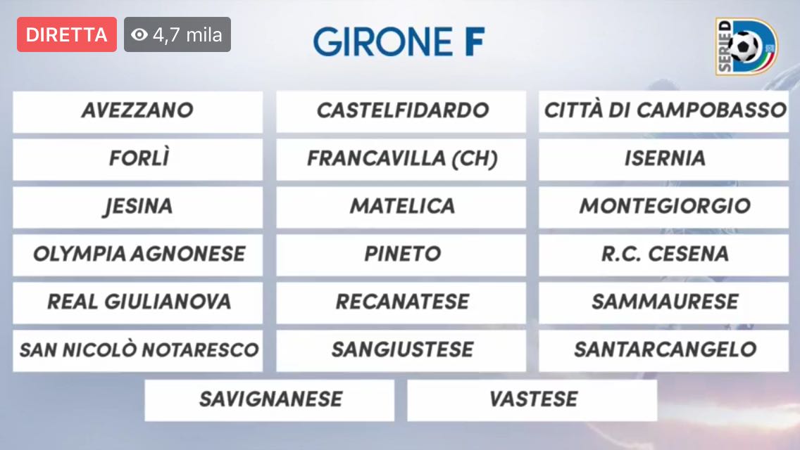 Campobasso, Isernia e Olympia Agnonese, le tre molisane di serie D, sono state inserite nel girone F, insieme a squadre abruzzesi, marchigiane e romagnole. Venti i club inseriti nel raggruppamento.