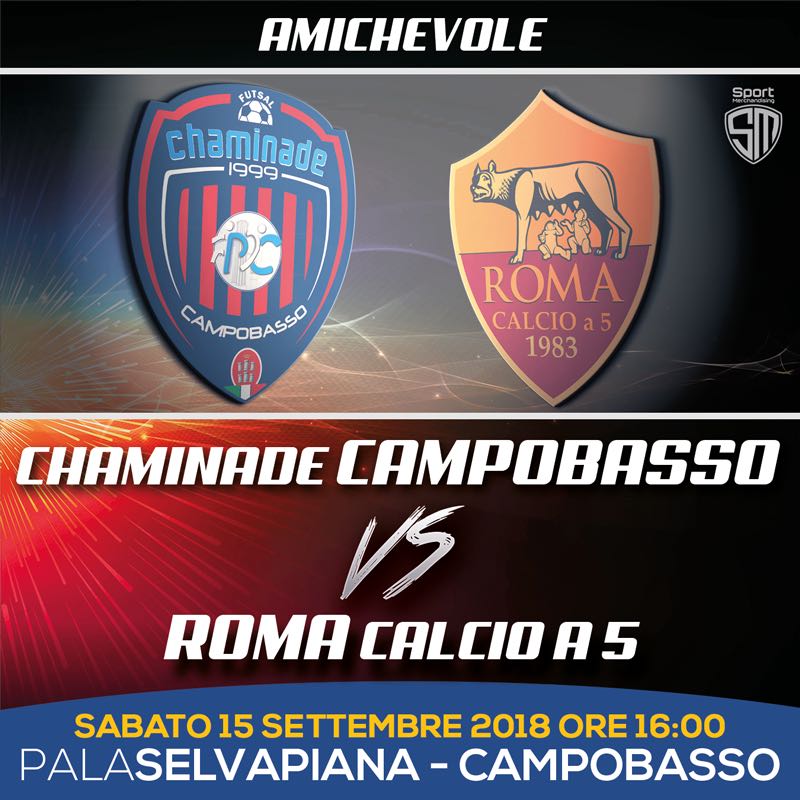 Un’amichevole di lusso: è quella che vedrà protagonista la Chaminade Campobasso contro la Roma Calcio a 5. Appuntamento al ‘PalaSelvaPiana’ alle ore 16 di sabato 15 settembre 2018. Ingresso gratuito.