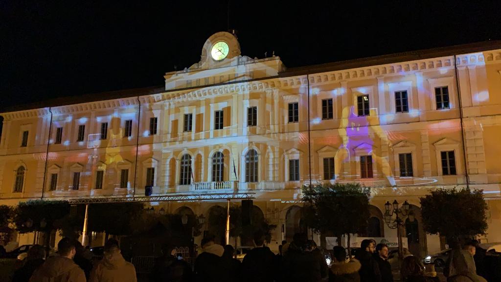 OCCHI AL CIELO In piazza Vittorio Emanuele II, davanti alle vetrate di Palazzo San Giorgio, in tanti hanno alzato gli occhi al cielo per ammirare il mapping (la ricostruzione 3D con animazioni della facciata) su cui sono state proiettate scene cestistiche con, peraltro, anche la proposizione dei loghi della Coppa Italia e delle otto formazioni finaliste. L’attesa è stata sciolta da un countdown che ha accomunato appassionati e semplici curiosi rimasti estasiati di fronte al video proposto curato dalla Plas Media.