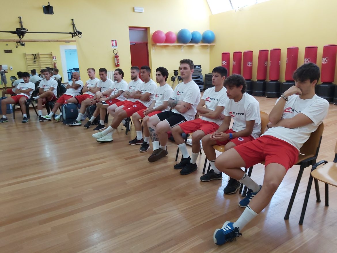 La squadra si è radunata al Palaunimol all’ora di pranzo e dopo una breve chiacchierata con staff tecnico e società si è passati sul campo agli ordini dei preparatori atletici che hanno fatto svolgere ai giocatori i primi test.