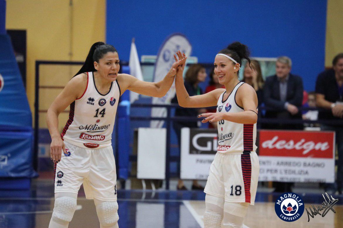 CAMPOBASSO: Marangoni 15 (3/7, 2/3), Di Gregorio 5 (0/2, 1/4), Mancinelli 18 (3/4, 3/5), Bove 10 (2/7, 2/5), Di Costanzo 9 (2/3); Porcu 5 (2/4, 0/3), Sanchez 11 (4/8), Chrysanthidou 2 (1/1), Amatori 2 (1/1). Ne: Sammartino e Falbo. All.: Sabatelli.