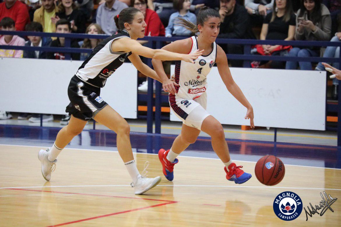 CAMPOBASSO: Marangoni 10 (2/9, 2/5), Di Gregorio (0/2, 0/2), Mancinelli 12 (4/10, 1/3), Bove 5 (1/8, 1/1), Di Costanzo 6 (3/4); Porcu (0/3, 0/3), Sanchez 15 (3/6, 2/6), Chrysanthidou 2 (1/3), Amatori (0/1). Ne: Sammartino e Falbo. All.: Sabatelli.