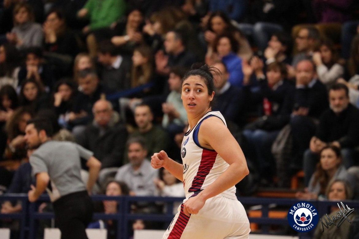 A LEZIONE DI TANGO Grazie ad una difesa asfissiante a tutto campo, le campobassane mettono a segno un primo parziale di 9-0 che le fa volare sino al +15 del 32-17 in un frangente di gioco dove sale in cattedra la ‘professoressa’ Carolina Sanchez, pronta a mettere in mostra giocate d’alta scuola tanto da guadagnarsi gli applausi convinti degli spettatori presenti sulle tribune dell’impianto di via Svevo, ancora una volta sold-out. Le civitanovesi provano a reagire, ma le rossoblù con Porcu (chiuderà la contesa con diciannove punti) e Di Gregorio volano a +17 (37-20). È Mašić (doppia doppia per la croata, top scorer di serata a quota venti punti con dieci rimbalzi catturati) a siglare gli ultimi punti delle magnolie all’altezza dell’intervallo lungo.