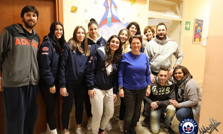 POMERIGGIO MEMORABILE Guidato da Rossella Ferro, direttore generale del club, un gruppo di sei giocatrici della Magnolia Campobasso – Giorgia Amatori, Emilia Bove, la greca Parthena Chrysanthidou, l’argentina Federica Del Bosco, la croata Mia Mašić e Rachele Porcu – ha dato seguito al grande cuore del pubblico rossoblù manifestatosi, lo scorso 28 dicembre, in occasione della gara con il Ponte Buggianese, appuntamento di ‘Teddy Bear Toss’: il lancio dei peluche al primo canestro di contesa, nella circostanza realizzato da Emilia Bove.