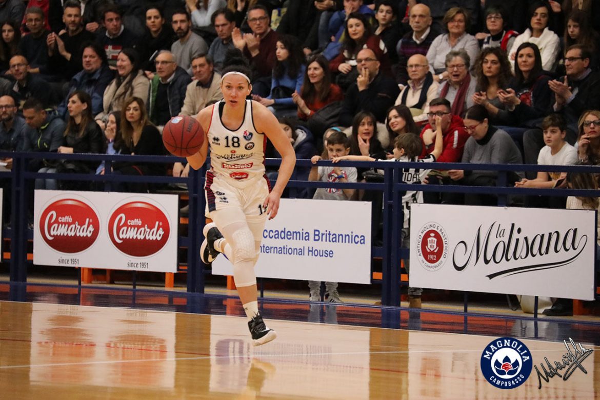 Il mese di febbraio è stato senza mezzi termini un periodo particolarmente positivo per La Molisana Magnolia Campobasso. Quattro successi in altrettante gare con nel mezzo due trasferte complicate come quelle sui parquet del Cus Cagliari e dell’Ariano Irpino e – quale caratteristica base – uno scarto sempre in doppia cifra sino all’apoteosi di sabato contro il Livorno, gara in cui tutte e dieci le rotazioni messe in campo da coach Mimmo Sabatelli hanno prodotto punti. Tra i cardini di questo gruppo rientra senz’altro l’esterna perugina Elisa Mancinelli, vero e proprio manifesto delle capacità difensive dei #fioridacciaio (cinque palle recuperate contro le labroniche, cinquantacinque sinora in stagione) e della versatilità con un gruppo che ha in tutte le sue interpreti caratteristiche d’insieme ben definite.