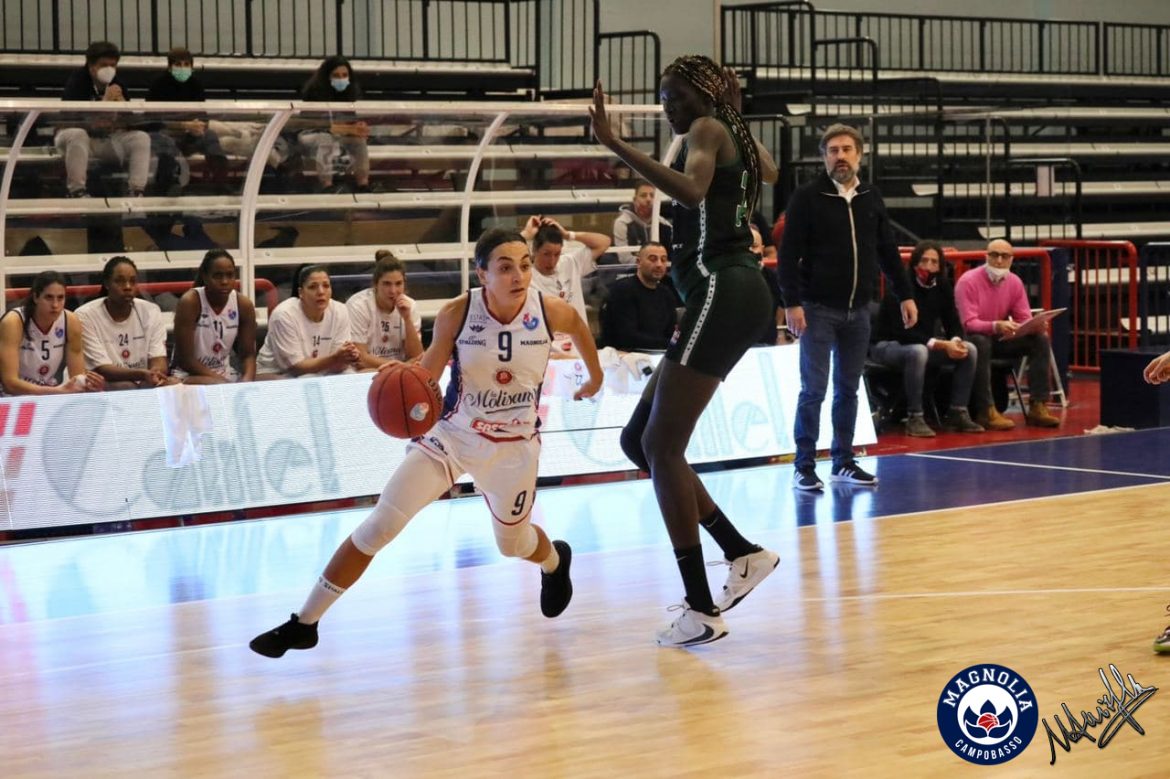 CAMPOBASSO: Bonasia 12 (5/12, 0/62), Mancinelli (0/2, 0/4), Gorini 9 (3/4, 0/1), Wojta 7 (2/6, 1/1), Bove 5 (1/4, 1/2); Marangoni 11 (1/5, 2/4), Ostarello 2 (1/3, 0/1), Quiñonez 8 (4/10, 0/1), Sanchez 2 (0/2 da 3), Giardina (0/1 da 3), Egwoh, Falbo. All.: Sabatelli.