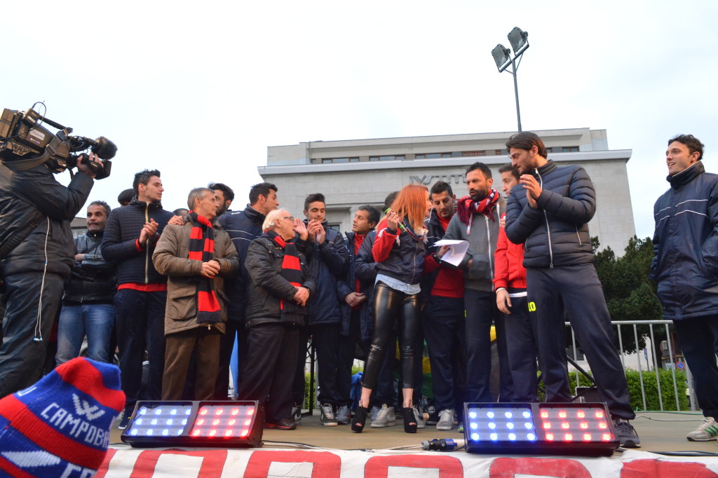 Alla buonora, alle 9, la squadra con in testa l’allenatore Francesco Farina e i calciatori più rappresentativi, Minadeo e Corradino, hanno tenuto il discorso alla presentazione delle 24 squadre della categoria Pulcini che hanno preso parte alla manifestazione della scuola calcio del presidente Angela Baranello. Il trainer dei rossoblù ha sottolineato come il calcio sia cosa diversa rispetto a quanto accaduto prima della finale di Coppa Italia tra il Napoli e la Fiorentina, ponendo l’attenzione sull’importanza dell’educazione su coloro che saranno la società del domani. L’occasione è stata anche utile per festeggiare il successo nella Coppa Italia nazionale con il trofeo che ha fatto bella mostra di sé, davanti a una platea di oltre trecento persone, tra baby calciatori e famiglie al seguito.