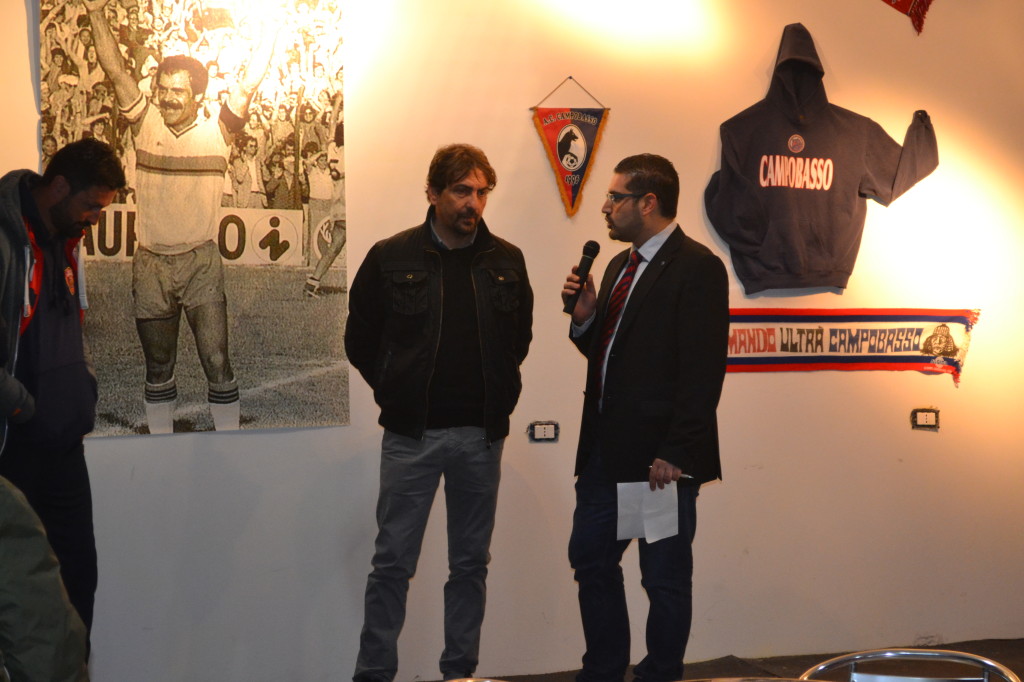 In tarda mattinata il trasferimento al locale ‘Buena Suerte’, per l’inaugurazione del club Campobasso ‘Michele Scorrano’, presieduto da Mino Ricciuto, che ha tenuto a precisare come dopo oltre trenta anni sia rinato nel capoluogo molisano un club della squadra della città. Anche in questo caso sono intervenuti Farina, Minadeo e Corradino, oltre al presidente della Provincia, Rosario De Matteis, in veste di ex calciatore dei lupi, nonché Mirella Scorrano, figlia del compianto ex capitano rossoblù, alla quale Ricciuto ha consegnato una targa ricordo e la prima maglia della neonata associazione.