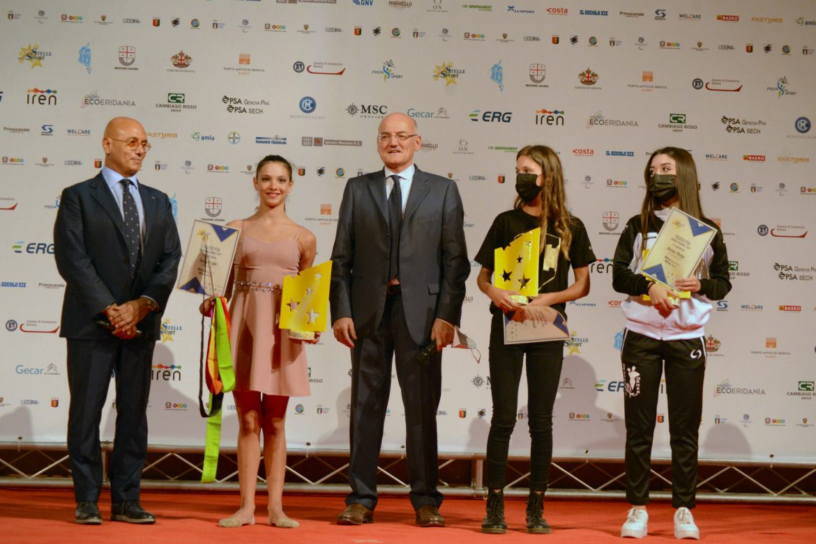 L’esibizione della ginnasta Ilaria Puglia, promossa in serie A con la PGS Auxilium, ha reso speciale la premiazione delle tre atlete Junior. Ilaria, vincitrice del Trofeo PSA e premiata da Massimiliano Cozzani (PSA) e Mauro Ferrando (presidente Porto Antico spa), insieme alla pugile Noemi Cafarelli e alla danzatrice Alessia Motzo. Danza sportiva presente anche nel Trofeo Cambiaso Risso dove il primatista italiano e finalista olimpico Davide Re (400 metri) e il consigliere comunale allo sport Vittorio Ottonello si sono complimentati con il primo classificato Gabriele Delfino, con il velista Filippo Vulcanile e il biker Matteo Siffredi. Nel corso della serata, sullo schermo sono stati trasmessi video riassuntivi delle numerose iniziative realizzate da Stelle nello Sport nel corso della stagione 2021. Dall’attività con le Scuole, con il progetto Una Classe di Valori, il concorso “Il Bello dello Sport”, il format “Alimentazione e Sport” all’attività benefica con l’Asta delle maglie dei campioni per la Gigi Ghirotti onlus, passando per il video contest “Lo Sport è vita” (sigla di chiusura del Galà) e il premio fotografico “Nicali-Iren”.