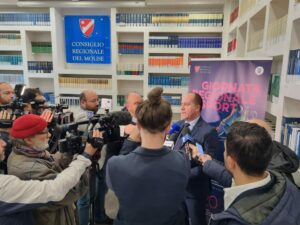 Salvatore Micone, presidente del Consiglio regionale del Molise intervistato dai giornalisti a Palazzo D’Aimmo