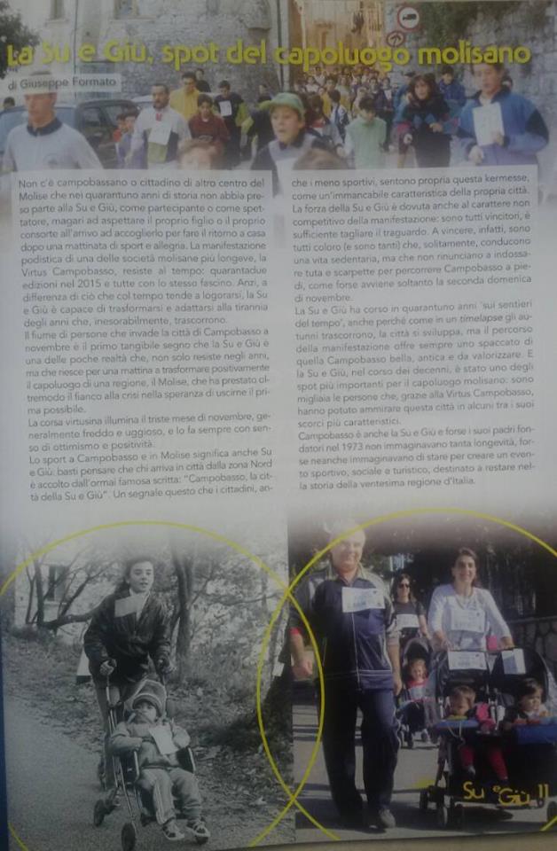 In occasione della ‘Su e Giù’ è uscito anche il numero 77 del periodico del Gruppo Sportivo Virtus. A pagina 9 anche un articolo del direttore responsabile di CBlive, Giuseppe Formato, dal titolo ‘La Su e Giù, spot del capoluogo regionale’. Riproponiamo anche qui il servizio.