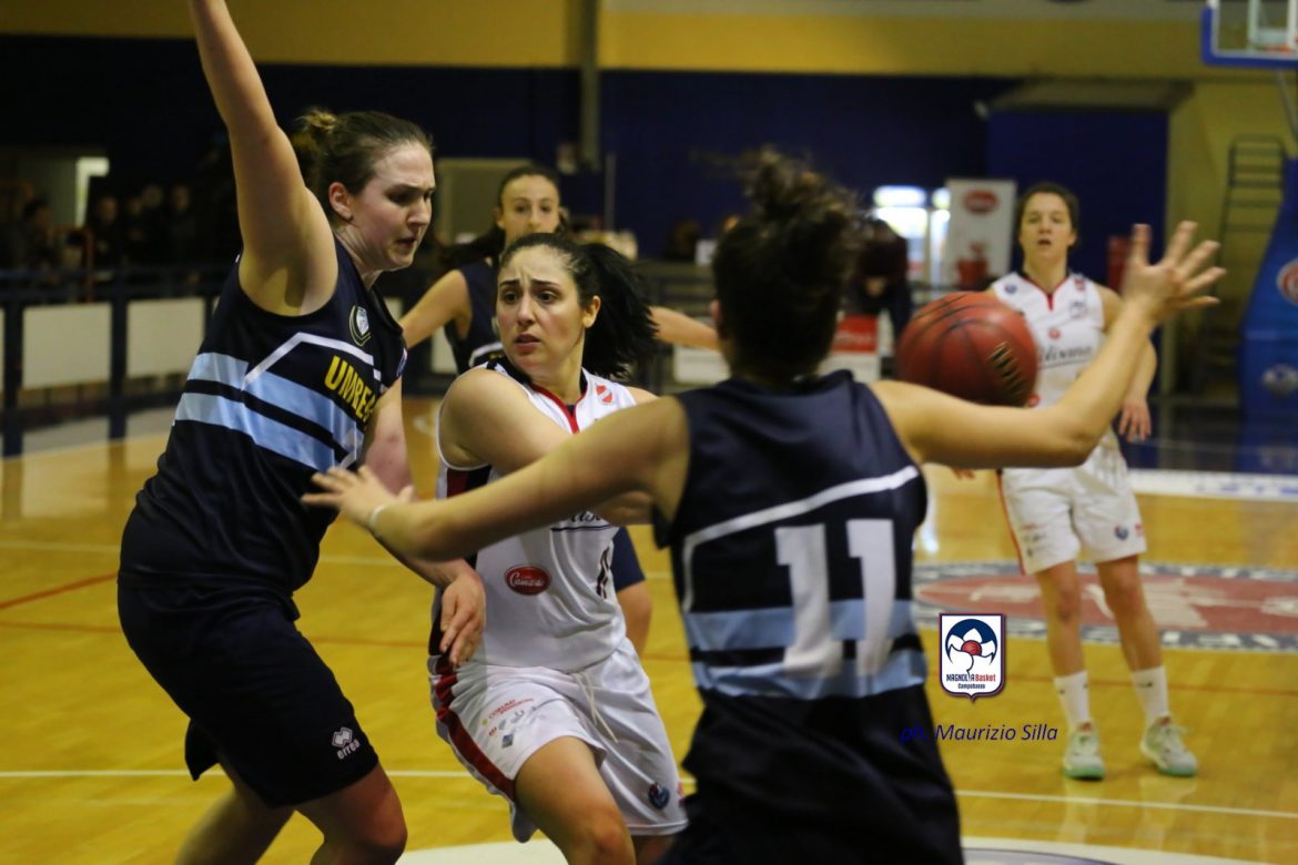 In quella che doveva essere la gara in cui dare continuità all’exploit di sabato scorso a Roma sul parquet del San Raffaele, le rossoblù finiscono invece per cadere in quella che è la quinta sconfitta, in dieci gare disputate, nell’impianto amico di Vazzieri, situazione che rischia di divenire un pericoloso ‘tarlo’ mentale per una squadra dall’età media giovane chiamata a fare i conti con l’esaltazione dei momenti felici ed il rammarico delle situazioni in cui sembra andare tutto storto. Ed è quello che si verifica, puntualmente, proprio contro Umbertide. Di fronte all’opzione ‘bulgara’ delle ospite della zona 3-2, i #fioridacciaio finiscono con il perdersi nei meandri di tanti, troppi, tentativi dall’arco dei tre punti che non vanno a buon fine. Ciavarella (top scorer delle rossoblù a quota 19) prova a tenere in linea di galleggiamento un’imbarcazione in cui, sotto le plance, a conferma di un trend positivo la pivot Dzinic dà vita ad una prova da ‘doppia doppia’ (sedici punti e dieci rimbalzi). Sull’altro fronte, però, i cinque elementi in doppia cifra con Fusco top scorer di serata rappresentano il piccolo capitale portato a casa dalle ospiti che, con il successo di diciotto punti al 40’, riescono a ribaltare anche la differenza canestri dopo il 48-63 patito all’andata.