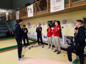 DI RIFFA O DI RAFFA Per due elementi del roster (la play Rachele Porcu e l’ala Laura Reani, accompagnate dal team manager Domenico Martella), tra l’altro, c’è stata anche una parentesi sportiva particolare. I tre #fioridacciaio, infatti, sono stati ospiti della Federbocce al centro tecnico federale di Campobasso per uno stage con la nazionale azzurra di raffa, provando qualche accosto al pallino sulle corsie dell’impianto del capoluogo di regione, sede nel weekend di un doppio appuntamento internazionale (a squadre ed individuale) nel programma degli eventi denominato ‘Il diavolo dei Misteri gioca a bocce’.