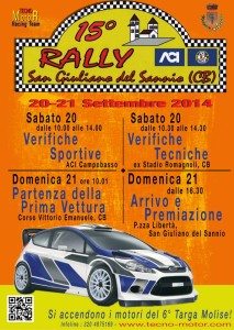 Tante le novità dell’edizione 2014: la prima è il passaggio della manifestazione da rally ronde a rally day. La nuova tipologia della manifestazione prevede lo svolgimento delle verifiche tecniche e sportive nella giornata di sabato 20 settembre. A partire dalle ore 10,30 amatori e appassionati potranno ammirare le vetture in sessione di verifica tecnica nel centro di Campobasso. Due le Prove Speciali (da ripetere 3 volte) proposte quest’anno dalla Tecno Motor Racing Team ai tanti appassionati che prenderanno il via alla 15^ edizione del rally molisano.