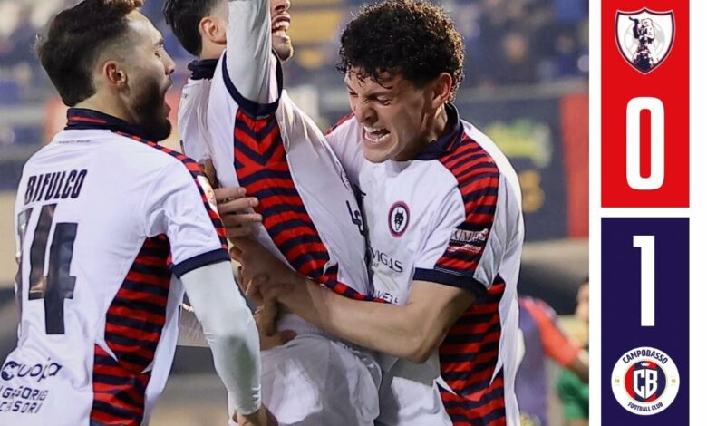 Dopo quattro minuti di recupero arriva il triplice fischio: il Campobasso può festeggiare un successo esterno di grande valore, costruito con una prova solida e concreta.