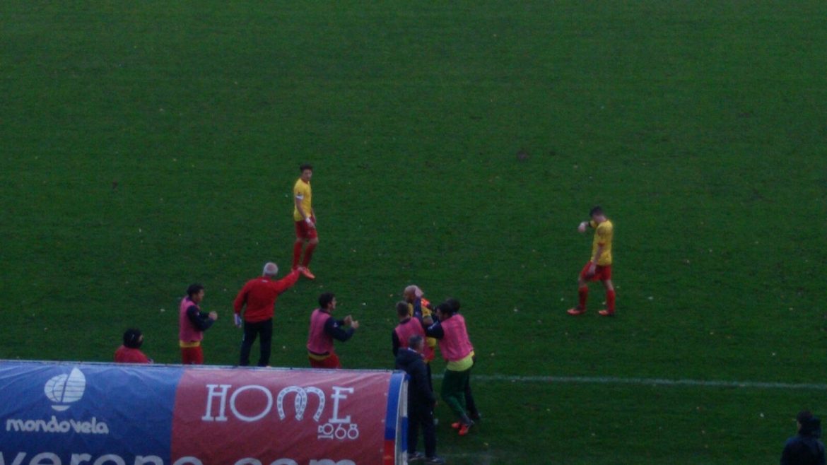 Al primo affondo del match, i rossoblù passano in vantaggio. Dalla sinistra Voltasio pennella per Fioretti, che nel cuore dell’area di rigore incorna e batte l’estremo difensore Vassallo.