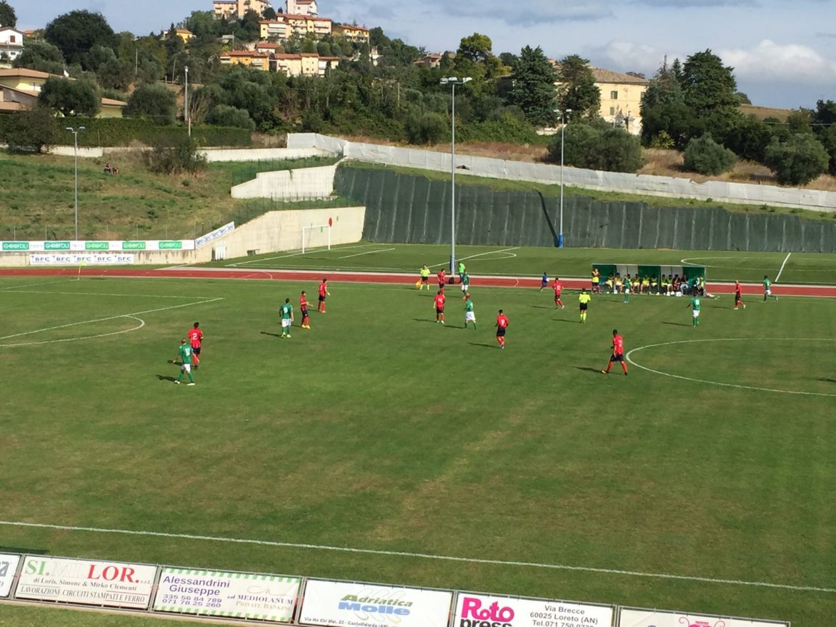 37′: Castelfidardo pericoloso con Filiaggi che tenta il tiro da fuori, ma la palla sorvola la traversa.