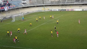 Gli abruzzesi imbastiscono una manovra all’80’, Russo resta a terra colpito duro, ma l’azione prosegue. Nessun gesto di fair-play dei biancorossi. Alla conclusione va Manisi, che spedisce alto.